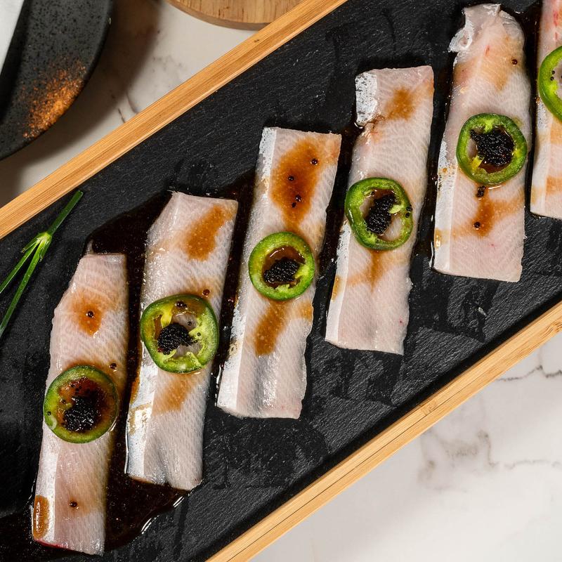 Baked roll with spicy crab inside, sliced white tuna, spicy mayo, and eel sauce on top.