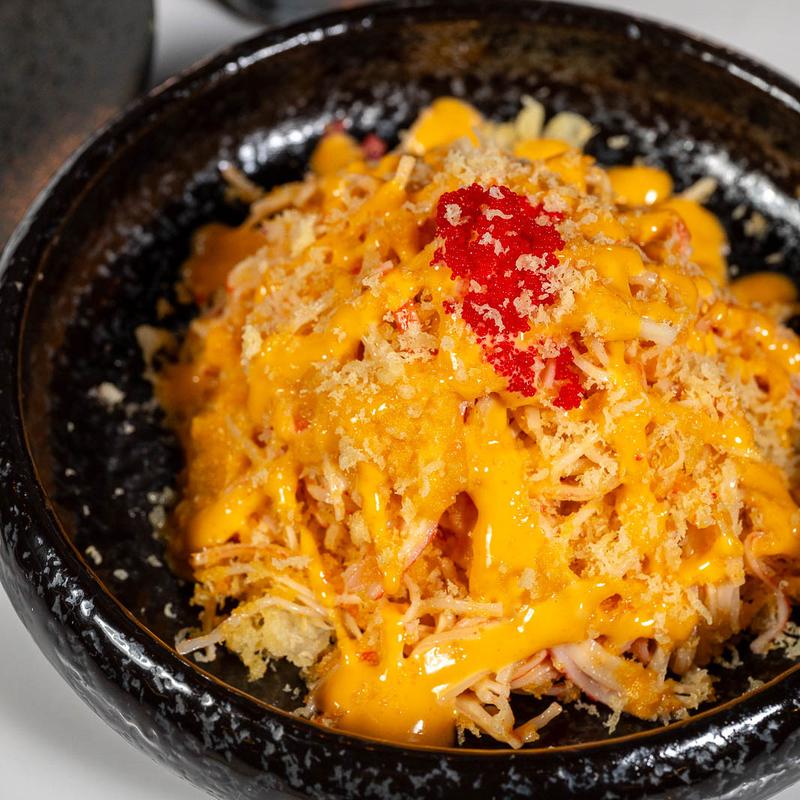 Deep fried soft shell crab, mango, avocado, and spicy crab inside with chef's special sauce on top.